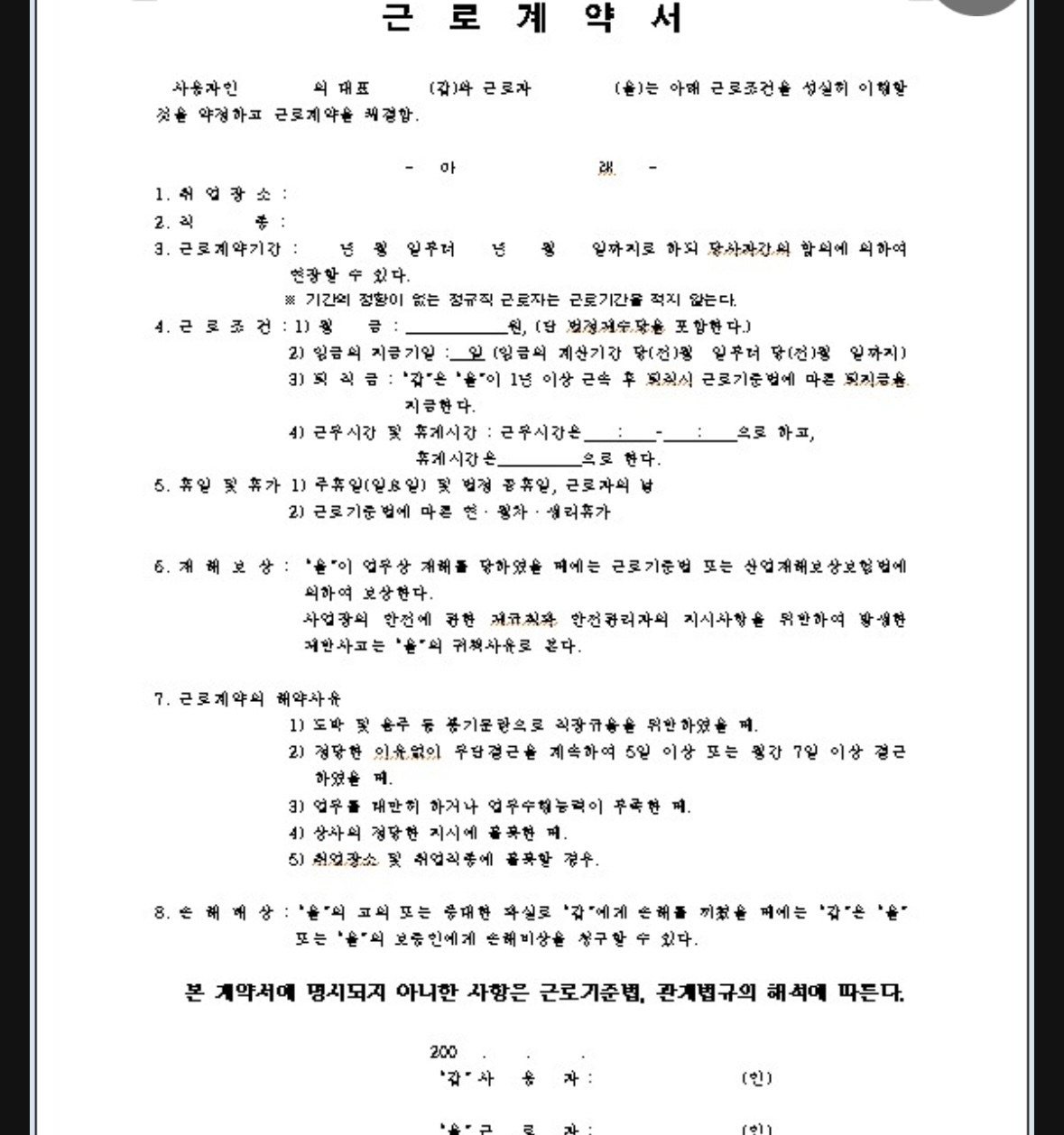미리 숙지하였더라면 이 알바는 시작조차 하지 않았을겄이다.. 나는 바보였다 꼭 근로계약서는 같이 작성해라!